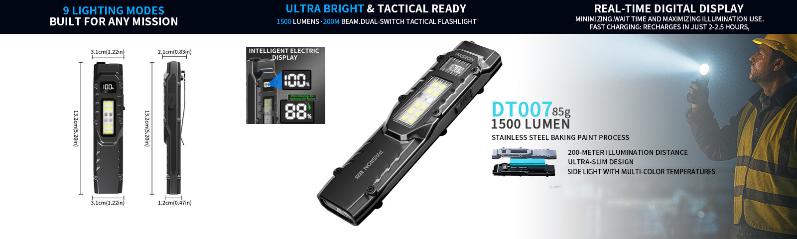 COB Ambient Torch: Fast Charging, High Power, Extended Battery Life -